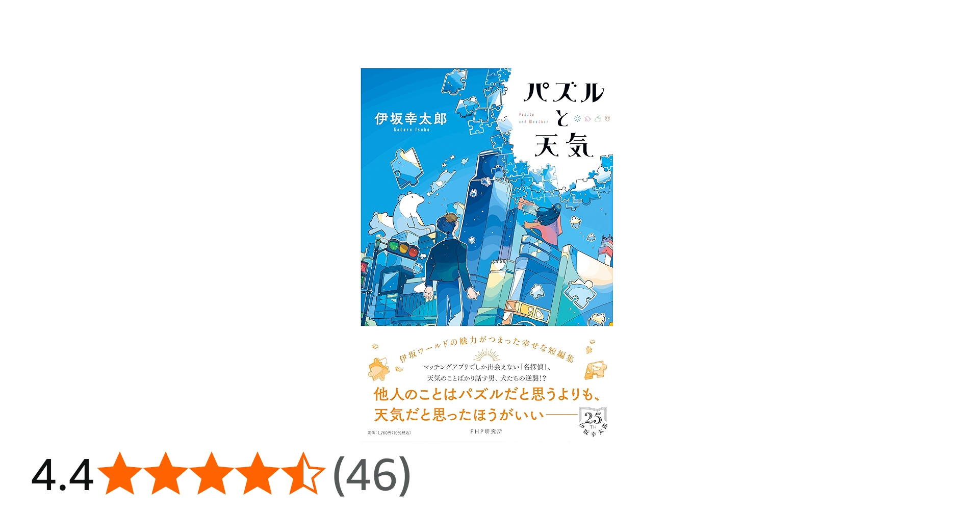 伊坂幸太郎デビュー25周年に贈る、「幸せ」な短編集! 【パズル】 悩みを抱えた「僕」は、マッチングアプリでしか出会えない「名探偵」に依頼する。 【竹やぶバーニング】 出荷した竹にかぐや姫が混入!? 仙台七夕まつりで大捜索が始まった! 【透明...